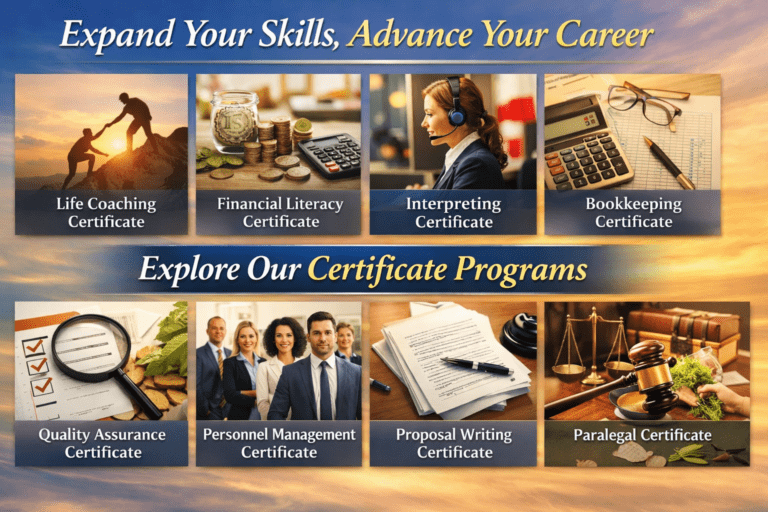 The Certificate Programs at Peace Multicultural University (PMU) deliver focused, career-ready training designed to equip students with practical, in-demand skills across multiple industries. Ideal for professionals seeking advancement, career changers exploring new opportunities, or learners looking to build specialized expertise, these programs offer a powerful alternative to longer degree pathways—without compromising quality or academic depth.